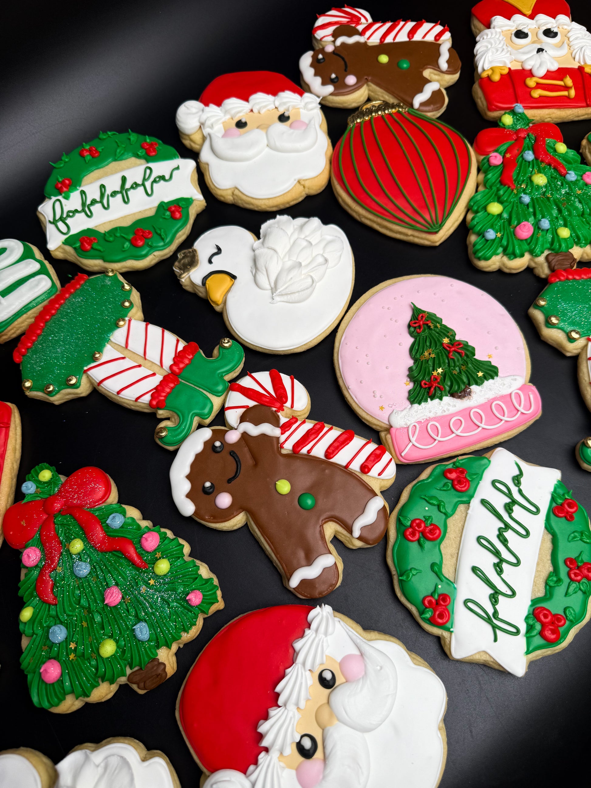 This will be a 1 dz random assortment of our decorated sugar cookies! *not all designs pictured*